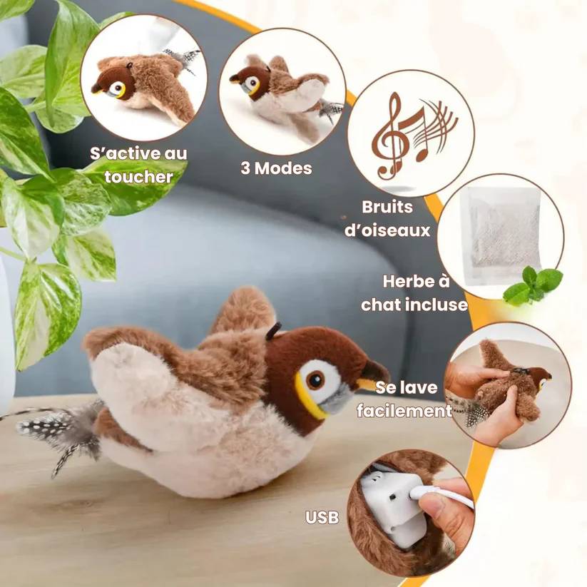 Nos jouets sont conçus pour stimuler et occuper votre chat intelligemment, grâce à des sons réalistes, des mouvements captivants et un design sécurisé que les jouets classiques n’offrent pas.